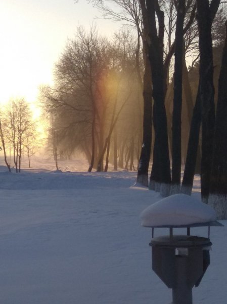Этот март оказался богатым не только на снежные заносы, но и на разнообразные гало — оптические эффекты на морозном воздухе. Новый пример прислал в редакцию читатель Александр Якубович.