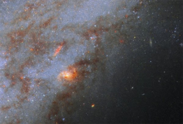 Изображение получено при помощи инструмента Wide Field Camera 3, установленного на борту орбитального телескопа «Хаббл» (NASA/ESA Hubble Space Telescope). Названный объект располагается на расстоянии приблизительно 65 млн световых лет от нас в созвездии Большой Медведицы.