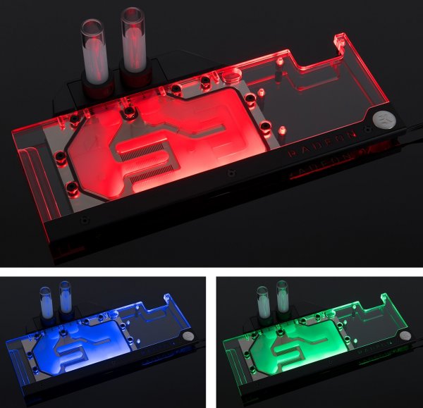 Сегодня многие компании, прежде предпочитавшие строгость форм и расцветок своих продуктов, экспериментируют с внешним видом новинок, пусть это и не воспринимается частью поклонников тех или иных брендов. Для производителя узлов систем охлаждения EK Water Blocks не привыкать ставить опыты над дизайном своих изделий, в частности водоблоков полного покрытия для видеокарт. Последние прежде выпускались EK в версии с «пузырьками» на крышке, однако этот маркетинговый ход не прижился. Зато эксперименты с подсветкой компонентов на сегодняшний день — почти беспроигрышный вариант. Поэтому не удивительно, что в исполнении EK Water Blocks вышла RGB-версия водоблока EK-FC Radeon Vega, о котором мы рассказывали в одном из предыдущих материалов. Над названием продукта маркетологи словенской компании долго голову не ломали: в продаже появится охладитель EK-FC Radeon Vega RGB.