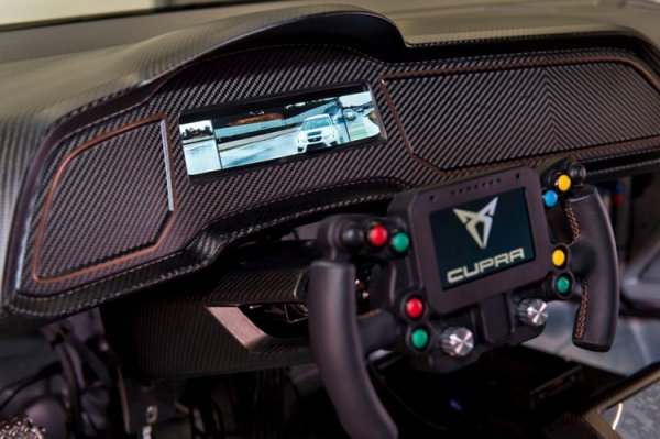 Вместо наружных зеркал заднего вида инженеры Cupra e-Racer установили видеокамеры, транслирующие изображение на выполненную в виде дисплея приборную панель электрокара.