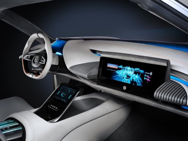 Салон выполнен в футуристическом стиле. В распоряжении водителя и пассажиров — различные дисплеи и сенсорные органы управления. Предусмотрены несколько режимов движения, в том числе комфортный и спортивный.
