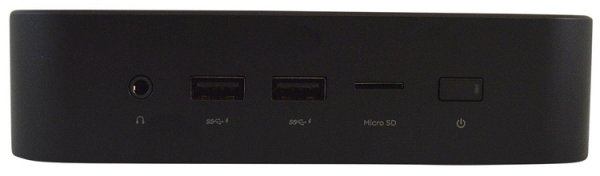 Интерфейс ввода/вывода представлен двумя портами USB 2.0, тремя разъёмами USB 3.0, портом USB Type-C и коннектором HDMI. Кроме того, есть разъём для сетевого кабеля и 3,5-миллиметровое аудиогнездо.