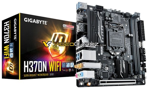 Любителям компактных систем стоит обратить внимание на материнскую плату Gigabyte H370N WiFi форм-фактора Mini-ITX. На её задней панели, похоже, распаян порт USB Micro-B, находящийся рядом с видеовыходами DisplayPort и HDMI. Для крупных радиаторов места не нашлось, зато предусмотрено подключение двух M.2 SSD-накопителей. Компанию им могут составить четыре SATA-устройства.