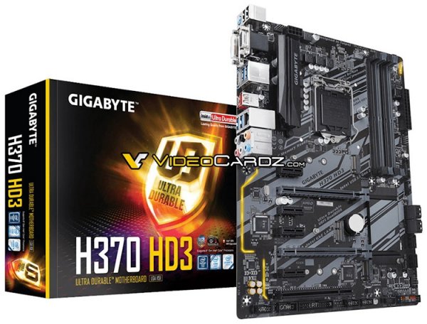 Одной из самых насыщенных разнообразными интерфейсами (а также светодиодами) новых плат Gigabyte LGA1151 станет ATX-модель H370 Aorus Gaming 3 WiFi на чипсете Intel H370. Она позволяет строить графические связки AMD CrossFire (по формуле «x16 + x4»), оснащена портами USB 3.1 типов A и C, массивными радиаторами VRM и M.2 (теплосъёмник для одного из трёх M.2 SSD-накопителей). Четыре слота для оперативной памяти DIMM DDR4 рассчитаны на установку 64 Гбайт RAM. Наряду с проводной сетью (Gigabit Ethernet), поддерживаются соединения Wi-Fi и Bluetooth.