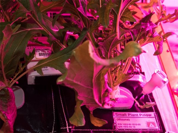 Для выращивания растений в космосе применяется установка Veggie. Она была доставлена на орбитальную станцию весной 2014 года. Эта система позволяет растениям развиваться в условиях микрогравитации и исключительно искусственного освещения.