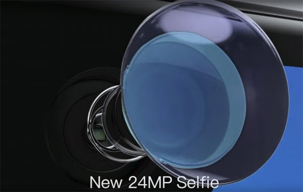 В верхней части дисплея имеется вырез, в котором расположена новая 24-мегапиксельная селфи-камера. В тыльной части корпуса установлена сдвоенная камера на основе сенсоров с 12 и 8 млн пикселей. Её оптические блоки выстроены по вертикали. Кроме того, сзади располагается дактилоскопический сканер.