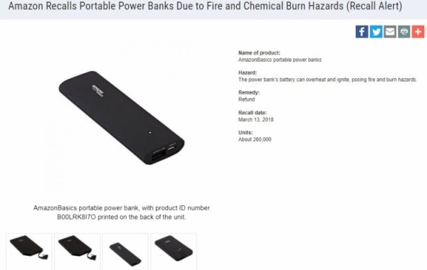 Запятнать репутацию из-за технических просчётов теперь решила и компания Amazon. Она известила об имевшем месте дефекте в реализованной партии фирменных резервных аккумуляторов, которые выпускаются под брендом Amazon Basics. Согласно подсчётам, под гарантийную программу возврата попадают 260 тыс. устройств. Среди проблемных экземпляров Amazon Basics встречаются модели на 16 000 мА·ч, 10 000 мА·ч, 5600 мА·ч, 3000 мА·ч и 2000 мА·ч.