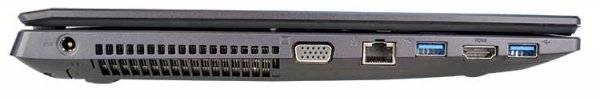 Коммуникационные возможности Aquarius Cmp NS575 включают адаптеры беспроводных сетей Bluetooth и Wi-Fi, разъём RJ45 (10/100/1000 Мбит/с), два порта USB 2.0 и два порта USB 3.0. Также есть разъёмы для наушников и микрофона. Вывод изображения на монитор или телевизор возможен через разъёмы HDMI и VGA.