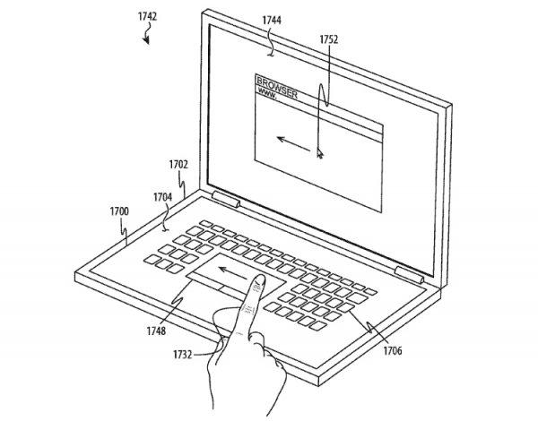 Документ носит имя «Keyless keyboard with force sensing and haptic feedback» — клавиатура без кнопок с измерением силы и тактильной обратной связью. «Яблочная» империя предлагает использовать вместо поля с традиционными физическими кнопками сенсорный дисплей, способный регистрировать силу нажатия.