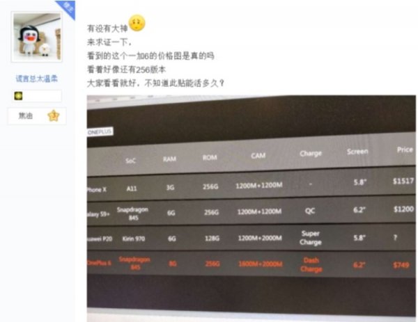 По данным того же источника, за OnePlus 6 (вероятнее всего речь идёт о базовой версии с 6 Гбайт ОЗУ) разработчики попросят $749. В максимальной комплектации смартфон обойдётся на $70–$100 дороже. Официальный дебют OnePlus 6 должен состояться уже в ближайшее время. Компания-производитель не спешит раскрывать все свои секреты заранее, предпочитая интриговать общественность заманчивыми тизерами.