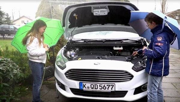 Компания Ford продемонстрировала возможность сбора дождевой воды для наполнения автомобильного бачка стеклоомывателя. Не исключено, что в перспективе подобное решение будет использоваться на обычных автомобилях. Идея использования дождевой воды для очистки лобового стекла пришла в голову подросткам из Германии. Во время поездки на автомобиле прошлым летом брат и сестра Дэниел и Лара Крон (Daniel and Lara Krohn) из немецкого Юлиха заметили, что их отец не может очистить разводы на лобовом стекле из-за отсутствия воды в бачке стеклоомывателя. При этом несколько минут назад машину буквально заливало дождём. «Это был настоящий ливень. Вода была везде, кроме бачка стеклоомывателя. Сестра и я решили, что это очень смешно, а потом решение проблемы пришло само собой. Нужно просто использовать дождевую воду», — рассказал 11-летний Дэниел. Идея получила первый приз на локальном научном конкурсе, а инженеры компании Ford помогли претворить её в жизнь. Рабочий прототип устройства установлен на автомобиль S-MAX. Сбор воды на тестовом минивэне обеспечили резиновые трубки, связавшие нижнюю часть лобового стекла с бачком для стеклоочистителя. Предусмотрена система фильтрации. «Решение Дэниела и Лары находилось под носом у водителей на протяжении десятилетий — и понадобился один момент прозрения, чтобы найти и реализовать его. Достаточно всего пяти минут дождя, чтобы бачок стеклоомывателя наполнился полностью», — говорят в Ford. По подсчётам Ford, каждый владелец легкового автомобиля в Европе использует в год около 20 литров воды для очистки лобового стекла. С учётом того, что на европейских дорогах в настоящее время находятся около 291 млн автомобилей, новая разработка теоретически позволит экономить до 6 млрд литров воды ежегодно только в этой части света.