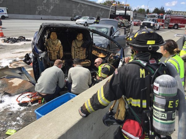 Как сообщают сетевые источники, электрокар двигался по шоссе Highway 101 в Маунтин-Вью (Калифорния). По неустановленным пока причинам машина на большой скорости врезалась в бетонный разделитель, после чего совершила столкновение с автомобилями марок Mazda и Audi.