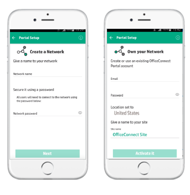 Управление и настройка системой OfficeConnect осуществляется через приложение для мобильных устройств и доступно для скачивания в магазине приложений (App Store/Google Play).