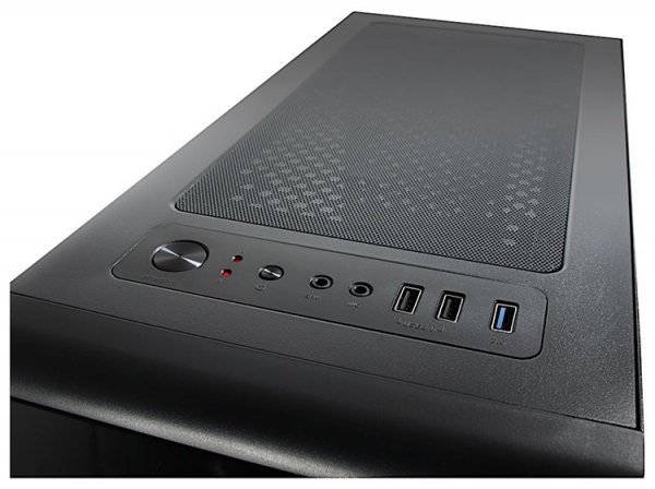 Корпус Inter-Tech W-III RGB изготовлен по похожему «рецепту»: стальной каркас украшен панелями из закалённого стекла (лицевая) и акрила (левая боковая), сверху и снизу находятся пылевые фильтры. Панель ввода-вывода, состав которой идентичен таковой у модели CXC2, разместилась спереди — она обрамлена декоративной вставкой «под алюминий».