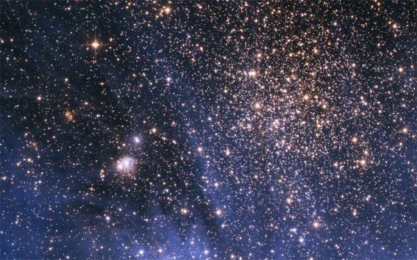 Великолепное изображение просторов Вселенной опубликовано на сайте Национального управления США по воздухоплаванию и исследованию космического пространства (NASA). На снимке запечатлена эмиссионная туманность NGC 346 с рассеянным скоплением. Изображение получено орбитальным телескопом «Хаббл» (NASA/ESA Hubble Space Telescope) ещё в 2005 году, но сегодня NASA предлагает ещё раз взглянуть на эту прекрасную область звёздообразования. Внутри NGC 346 находится множество молодых светил, родившихся несколько миллионов лет назад. Некоторые из этих звёзд по массе вдвое уступают нашему Солнцу. Эти светила всё ещё находятся на стадии формирования; в их ядрах ещё не началось термоядерное горение водорода. Объект NGC 346 простирается приблизительно на 200 световых лет. Он находится на удалении около 210 тыс. световых лет от нас в Малом Магеллановом Облаке — карликовой галактике, являющейся соседкой нашего Млечного Пути. Добавим, что миссия телескопа «Хаббл», который находится на орбите уже более четверти века, продлена до 2021 года. Затем эстафету у этого аппарата примет система «Джеймс Уэбб». Новый космический телескоп станет самой большой и мощной орбитальной обсерваторией в истории: размер составного зеркала равен 6,5 метра.