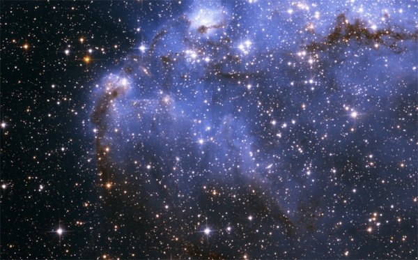 На снимке запечатлена эмиссионная туманность NGC 346 с рассеянным скоплением. Изображение получено орбитальным телескопом «Хаббл» (NASA/ESA Hubble Space Telescope) ещё в 2005 году, но сегодня NASA предлагает ещё раз взглянуть на эту прекрасную область звёздообразования.