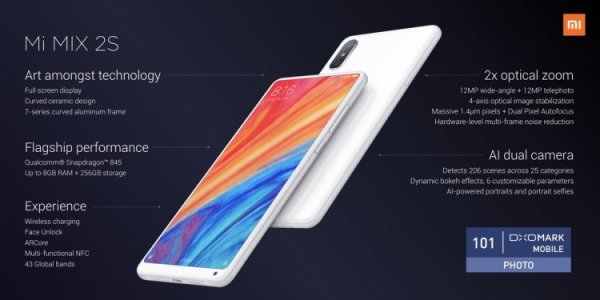 Не успело подойти к концу мероприятие, посвящённое анонсу Mi Mix 2S, как смартфон Xiaomi появился в рейтинге лаборатории DxOMark. Напомним, что специалисты DxOMark занимаются тестированием устанавливаемых в мобильные гаджеты камер, присуждая им условные баллы по результатам каждого этапа испытаний.