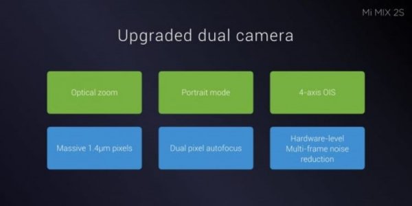 Модель Xiaomi Mi Mix 2S оснастили сдвоенной тыльной камерой, состоящей из: