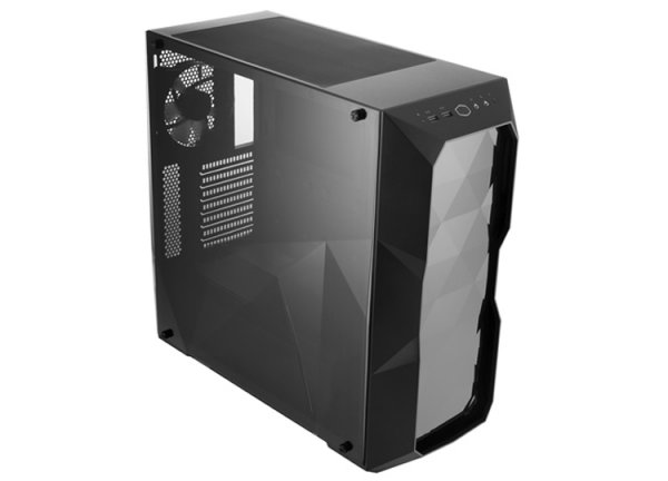 Новинка имеет оригинальный дизайн в стиле гранёного алмаза. В боковой части установлена акриловая панель, через которую хорошо просматриваются использованные компоненты.