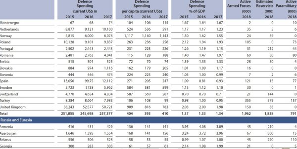Также эксперты оценили численность белорусской армии — 45?350 военнослужащих, армейский резерв насчитывает 289 500 человек. Еще 110 тысяч человек входят в состав различных военизированных формирований. Из них 12 тысяч человек — это пограничные войска, 87 тысяч — милиция, 11 тысяч — внутренние войска.