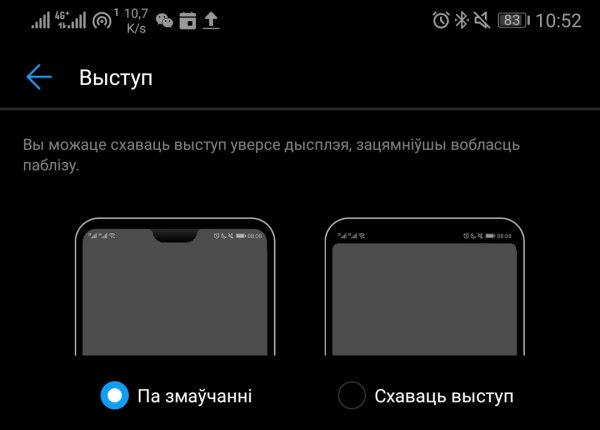 Во-вторых, вы можете выбрать — оставить вырез или сделать так, чтобы он «слился» с верхней панелью уведомлений черного цвета. Такая опция более выигрышно смотрится на OLED-экране старшего Huawei P20 Pro (из-за настоящего черного цвета).