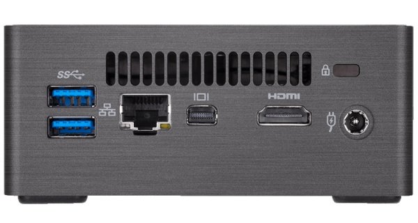 Габариты составляют всего 46,8 ? 112,6 ? 119,4 мм. На фронтальную панель выведены порты USB 3.0 и USB 3.0 Type-C, а также 3,5-миллиметровый аудиоразъём. Сзади можно обнаружить интерфейсы HDMI 2.0a и Mini-DisplayPort 1.2a, два порта USB 3.0 и гнездо для сетевого кабеля.