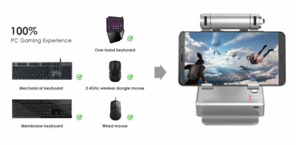 На фоне ажиотажа с мобильной версией PUBG, где игроки с клавиатурами/мышами доминируют над «адептами» сенсорного дисплея, актуальность GameSir X1 BattleDock может оказаться довольно высокой. GameSir X1 BattleDock представляет собой универсальную док-станцию, взаимодействующую со смартфоном по Bluetooth 4.0. То есть владелец GameSir X1 BattleDock подключает к хабу мышь и клавиатуру проводным способом, в то время как мобильный гаджет и док-станция синхронизируются друг с другом уже по беспроводному каналу.