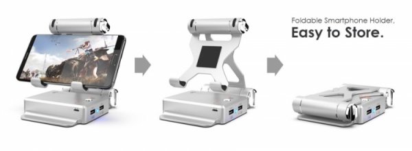 Традиционные док-станции с интегрированным клавиатурным модулем и даже тачпадом способны превратить смартфон в аналог ноутбука, однако далеко не всем нравятся комплексные решения формата 2-в-1. Более практичным способом трансформации смартфона в ноутбук кажется вариант с использованием хаба типа GameSir X1 BattleDock. Данное устройство имеет удобное крепление-фиксатор под смартфон и предлагает собственные USB-разъёмы для подключения игровой периферии — любимой компьютерной мыши и клавиатуры. На фоне ажиотажа с мобильной версией PUBG, где игроки с клавиатурами/мышами доминируют над «адептами» сенсорного дисплея, актуальность GameSir X1 BattleDock может оказаться довольно высокой. GameSir X1 BattleDock представляет собой универсальную док-станцию, взаимодействующую со смартфоном по Bluetooth 4.0. То есть владелец GameSir X1 BattleDock подключает к хабу мышь и клавиатуру проводным способом, в то время как мобильный гаджет и док-станция синхронизируются друг с другом уже по беспроводному каналу. Среди преимуществ GameSir X1 BattleDock — компактность аксессуара, которую ему обеспечивает складная конструкция. А потому транспортировка док-станции массой около 284 г и толщиной в походном режиме не более 3,3 см вряд ли обернётся трудностями. Работает GameSir X1 BattleDock от встроенной аккумуляторной батареи ёмкостью 3000 мА·ч, гарантирующей до 5 ч непрерывного функционирования. Зарядка док-станции осуществляется через стандартный разъём Micro-USB. На сайте компании-производителя GameSir X1 BattleDock доступен для заказа по цене $50. Однако на популярных торговых площадках удастся обнаружить эту же док-станцию с небольшой скидкой и потратить на её покупку чуть больше $40.