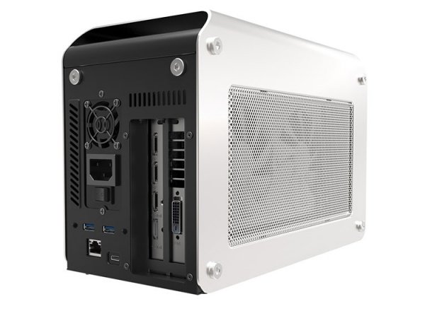 Новинка допускает установку двухслотовых видеокарт длиной до 260 мм. Питание обеспечивает встроенный блок мощностью 500 Вт. Габариты бокса составляют приблизительно 300 ? 138 ? 204 мм.