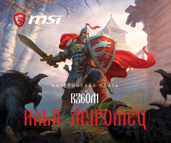 Арт для региональной версии матплаты B360M Mortar создавался руками московского художника Андрея Кузинского. Его работу покупатели B360M Mortar Илья Муромец смогут увидеть в оформлении обеих сторон упаковки и комплектного коврика для мыши, а также на фоновом изображении программы настройки UEFI (MSI Click BIOS 5). Отметим, что покупка новинки даёт право на получение неких «царских даров» от Micro-Star International при соблюдении ряда условий.