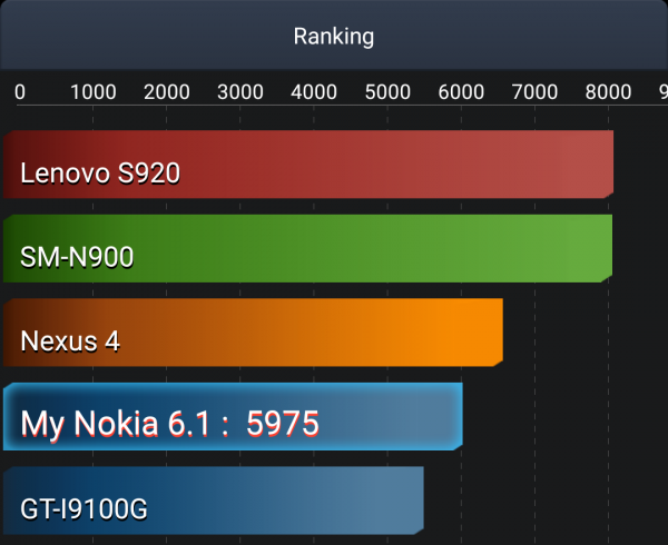 Как и в прошлогоднем Nokia 6, наш смартфон оснащен аккумулятором на 3000 мА·ч, но при этом более мощным чипом. Несмотря на то, что он выполнен по более экономичному 14-нанометровому процессу, это никак не повлияло на результаты автономности. В нашем «полевом» тесте с получасом игр и примерно таким же количеством звонков, синхронизацией двух почтовых ящиков, трех мессенджеров и часом веб-серфинга гаджет едва продержался с утра до вечера.