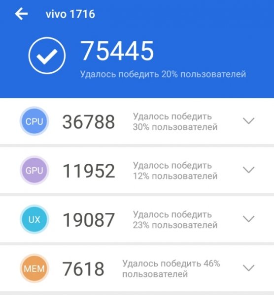 В обновленной версии бенчмарка AnTuTu смартфоны набирают около 75 тысяч баллов. Такого результата более чем достаточно для любых повседневных задач с просмотром онлайн-видео, серфингом в Сети и общением в мессенджерах.