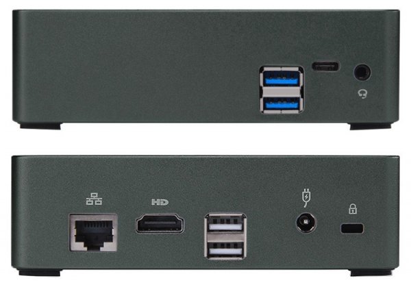 Оснащение включает адаптеры беспроводной связи Wi-Fi IEEE 802.11ac Dual Band и Bluetooth 4.2, гигабитный сетевой контроллер Realtek RTL8111F, а также звуковой кодек Realtek ALC269-VC3. Есть два порта USB 3.0 и два порта USB 2.0, один разъём USB Type-C, интерфейс HDMI 1.4b и 3,5-миллиметровый аудиоразъём. Внутри корпуса предусмотрено место для дополнительного 2,5-дюймового накопителя. Габариты составляют 129 ? 124 ? 39 мм.