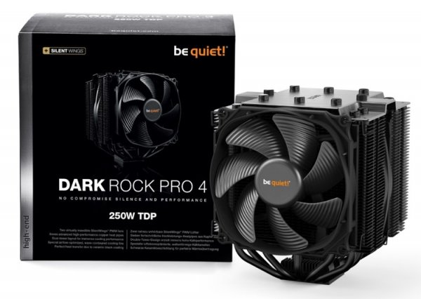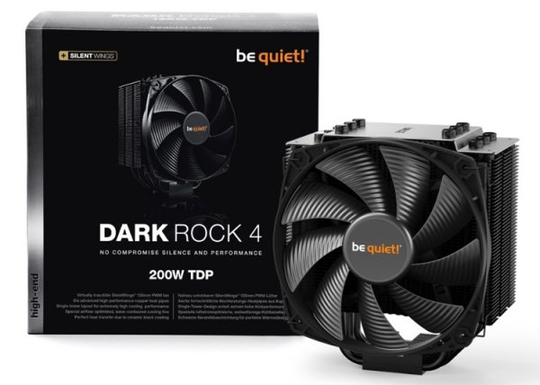 Известный производитель систем охлаждения, корпусов и блоков питания be quiet! официально представил кулеры Dark Rock 4 и Dark Rock Pro 4, первая информация о которых была обнародована в начале года в рамках выставки CES 2018. Новинки рассчитаны на высокопроизводительные процессоры. В частности, модель Dark Rock 4 способна справляться с охлаждением чипов, обладающих максимальным значением рассеиваемой тепловой энергии до 200 Ватт. У версии Dark Rock Pro 4 этот показатель ещё выше — 250 Ватт. Обе модели покрыты специальной чёрной краской, в состав которой входят керамические частицы, что не только придает кулерам привлекательный внешний вид, но и улучшает передачу тепла. Шесть высокопроизводительных тепловых трубок Dark Rock 4 эффективно отводят тепло от основания кулера, а в версии Dark Rock Pro 4 используются семь таких трубок. Специальные микро-точки на рёбрах радиатора увеличивают общую площадь охлаждения, а волновой контур пластин способствует бесшумному и оптимизированному воздушному потоку. Новинки оснащены вентилятором Silent Wings 135mm PWM с оптимизированными для лучшего воздушного потока лопастями, надёжным 6-полюсным моторчиком на гидродинамическом подшипнике (FDB). Dark Rock Pro 4 имеет дополнительный вентилятор Silent Wings 3 120mm PWM с воронкообразным воздухозаборником. Конструкция крепления вентиляторов использует изолирующие вибрации элементы на радиаторе, что обеспечивает ещё более тихую работу. Верхняя крышка обеих моделей выполнена из матового алюминия с высококачественной алмазной отделкой, а специальные колпачки скрывают концы тепловых трубок и монтажные отверстия. Кулеры подходят для использования с процессорами AMD и Intel. Модель Dark Rock 4 оценена в 75 долларов США, модификация Dark Rock Pro 4 — в 90 долларов.