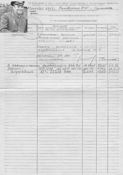 В учетно-послужной карте Гагарина в хронологическом порядке указаны должности, на которых он служил, и места службы, а также социально-демографические данные.