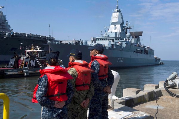 В составе американской группы вышел и немецкий фрегат F221 Hessen. Этот корабль относится к проекту «Саксония» и построен с применением технологии стелс. Водоизмещение полное — 5690 тонн, скорость хода достигает 29 узлов. Дальность плавания — 4000 миль на 18 узлах. Экипаж — 242 человека.