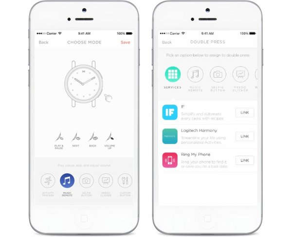 Обмен данными со смартфоном осуществляется посредством беспроводной связи Bluetooth 4.1. Гаджет наделён трёхосным акселерометром. Кнопка на корпусе позволяет контролировать некоторые функции смартфона, например, камеру и музыкальный плеер.