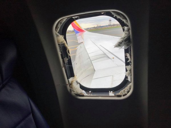 Осколки взорвавшегося двигателя разбили один из иллюминаторов. По сообщению очевидцев, в образовавшееся отверстие едва не утянуло одну из пассажирок, сидевших рядом.