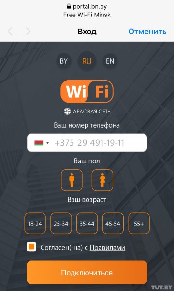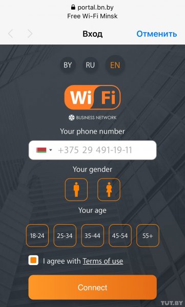 Это стандартная процедура для любой публичной Wi-Fi точки в Беларуси — провайдер должен идентифицировать пользователя. Интерфейс оптимизирован и для туристов — есть меню на английском, поддерживаются SIM-карты операторов со всего мира.