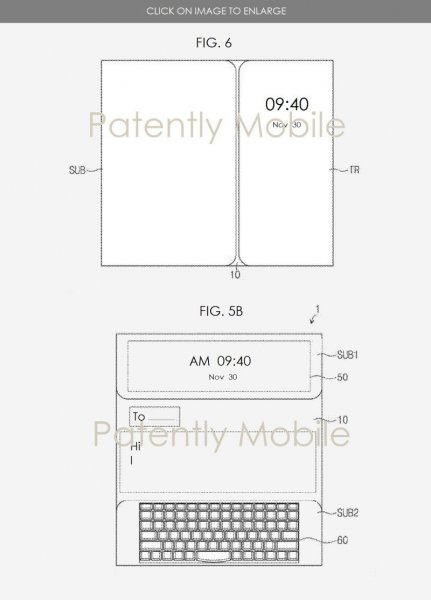 Похожий патент компания уже получала в 2016 году. В новом издании на одной из задних панелей аппарата будет расположен небольшой дисплей, на второй стороне — физическая клавиатура. На третьей стороне гаджета (в раскрытом состоянии) будут постоянно отображаться уведомления и время.