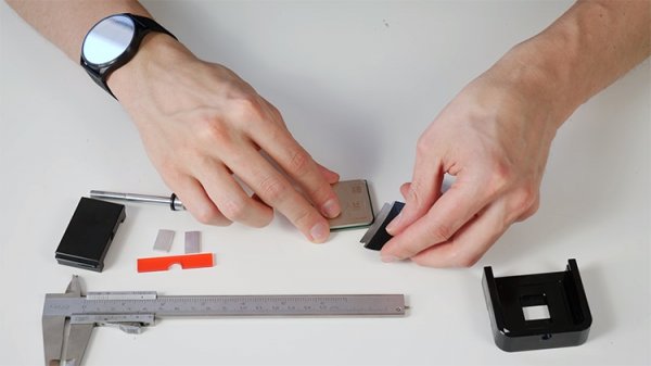 Для снятия крышки с Ryzen 5 2600 немецкий энтузиаст сначала воспользовался лезвием, которым надрезал клейкую массу по периметру крышки, затем поместил процессор в приспособление Delid Die Mate 2 с двумя небольшими алюминиевыми вставками (для более равномерного распределения нагрузки на PCB). После того как CPU был надёжно зафиксирован, он был прогрет приблизительно до 180 °C для размягчения клея, и, наконец, крышка была легко снята посредством сдвига (завинчиванием винта в Delid Die Mate 2).