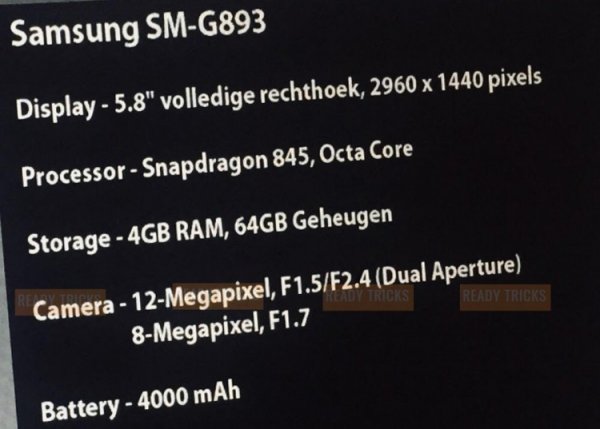 Сетевые источники обнародовали изображение, раскрывающее ключевые характеристики смартфона Samsung с кодовым обозначением SM-G893.
