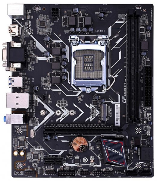Информация о модели C.H310M-K PRO V20 изложена на сайте colorful.cn лишь частично, однако и без спецификации видно, что данное устройство будет соперничать с «ультрабюджетными» матплатами других производителей. На это указывают всего четыре фазы питания гнезда LGA1151, отсутствие слотов M.2 Key M и M.2 Key E, радиатора VRM и видеовыхода HDMI. Кроме того, стоит отметить, что на плате распаяны 6-канальный аудиокодек Realtek и гигабитный сетевой контроллер начального уровня. В целом модель на наборе системной логики H310 почти не уступает «старшей сестре»: будущие владельцы смогут одновременно задействовать два слота DIMM DDR4, четыре порта SATA 6 Гбит/с, разъёмы для карт расширения PCI Express 3.0 x16 и PCI Express 2.0 x1, штырьковые USB 3.0 и USB 2.0.