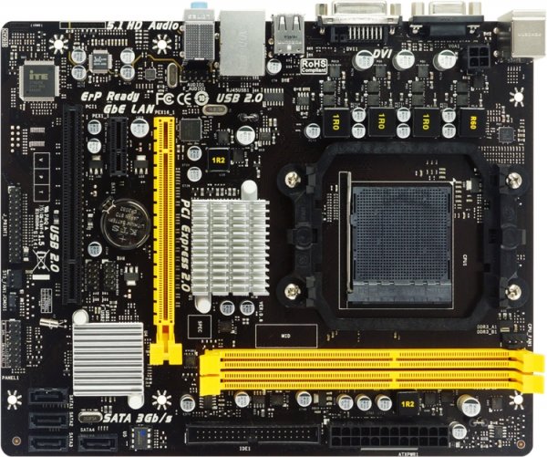 Плата полагается на системную логику AMD 760G / SB710. Решение соответствует типоразмеру Micro ATX (235 ? 190 мм), что позволяет сформировать довольно компактный компьютер.
