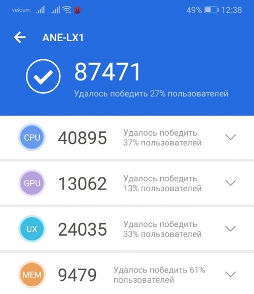 В тесте AnTuTu результат смартфона составляет 87 тысяч баллов, чего сегодня хватает для любых задач — от общения в мессенджерах до игры в «танки» на средних настройках графики (40?60 fps). Под нагрузкой аппарат немного нагревается в верхней части, под основной камерой.