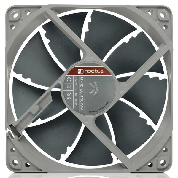 Вентиляторы NF-P12 redux выполнены в оттенках серого. Их крыльчатка имеет широкие лопасти с зазубринами, а подшипник указан как SSO (гидродинамический Noctua, первого поколения относительно SSO2). По сравнению с A12x25, «бюджетные» аналоги NF-P12 более производительны на максимальной скорости, но и шумят больше.