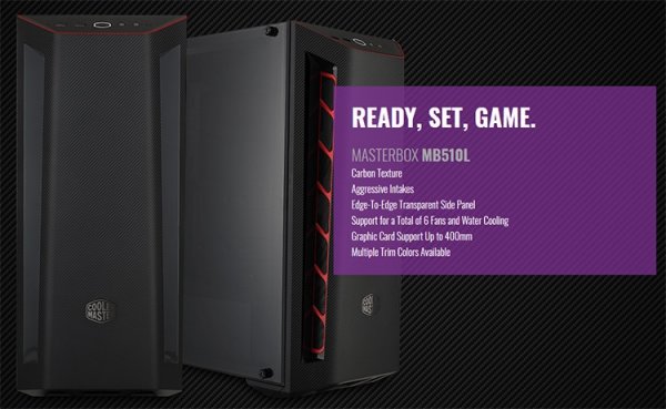 Ассортимент корпусов компании Cooler Master продолжает активно пополняться моделями MasterBox, сочетающими в себе как привычные элементы, так и оригинальные решения. На этот раз тайваньский производитель решил порадовать любителей «гоночного» внешнего вида комплектующих Mid-Tower корпусом MasterBox MB510L. Продукт появится в продаже в четырёх цветовых вариантах обрамления передней панели — красном (артикул MCB-B510L-KANN-S00), чёрном (MCB-B510L-KANN-S01), белом (MCB-B510L-KANN-S02) и синем (MCB-B510L-KANN-S03). Сама лицевая панель имеет «карбоновую» текстуру, но рассчитывать на то, что она действительно изготовлена из углеволокна, конечно не стоит.