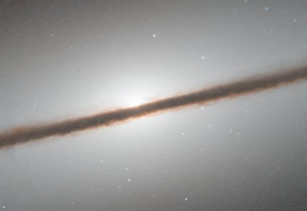 Однако на представленном снимке спиральную структуру галактики увидеть невозможно. Дело в том, что объект запечатлён «с ребра». На снимке галактика выглядит как довольно толстая полоса с яркой вспышкой посередине.