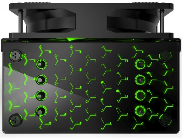 Кулер оснащён многоцветной RGB-подсветкой. Причём подсвечивается не только вентилятор, но и верхняя часть радиатора.