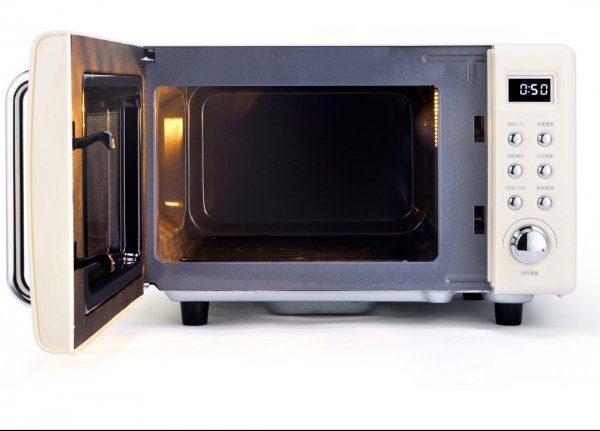 Внутренний объем микроволновки составляет 18 литров, в корпусе белого цвета отсутствуют острые грани. Система управления аппаратом механическая, с хромированными кнопками в ретростиле.